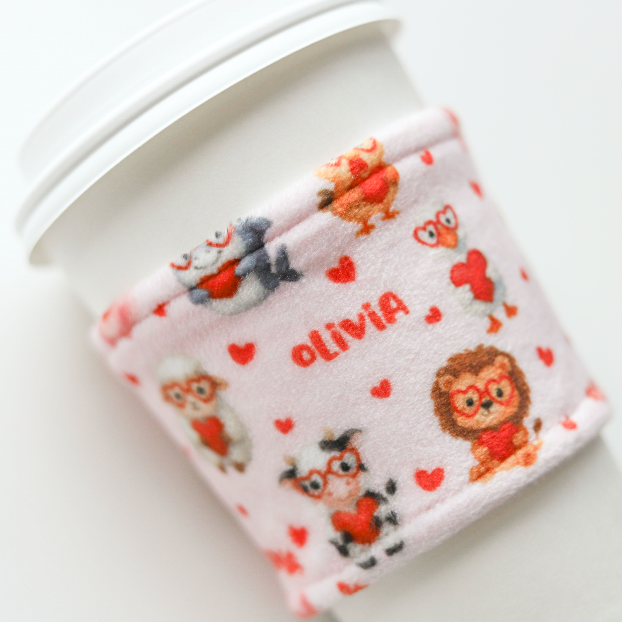 Description: Keep your hands comfortable while drinking a hot or cold takeout beverage. Personalized with your font choice and design.